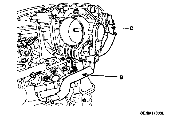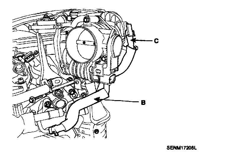 4. Disconnect the PCSV connector (A), the MAP sensor connector (B) and the PCSV hose.