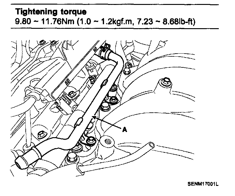Tightening torque 9.80 - 11.76 Nm (1.0 - 1.2 kgf.m, 7.23 - 8.68 lb-ft)
