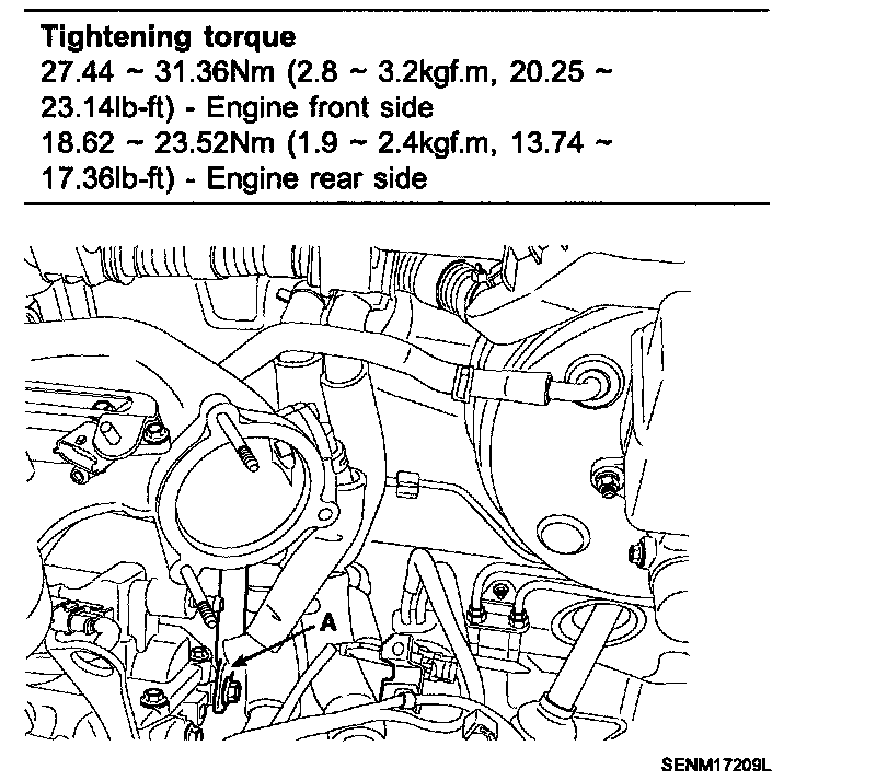 27.44 - 31.36 Nm (2.8 - 3.2 kgf.m, 20.25 - 23.14 lb-ft) - Engine front side