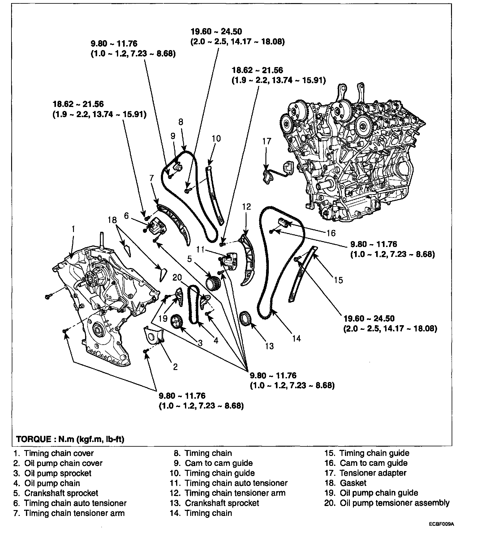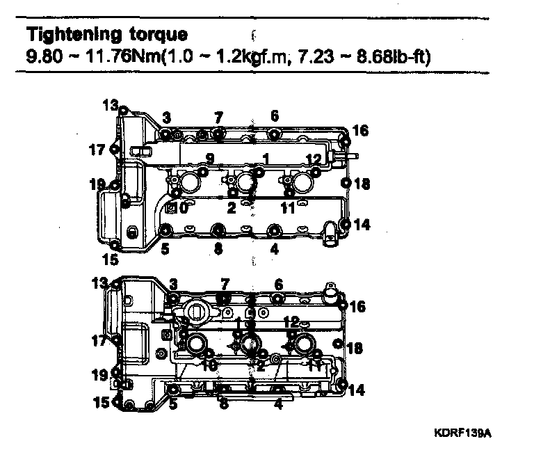 Tightening torque 18.62-21.56 Nm (1.9-2.2 kgf.m, 13.74-15.91 lb-ft)