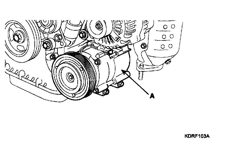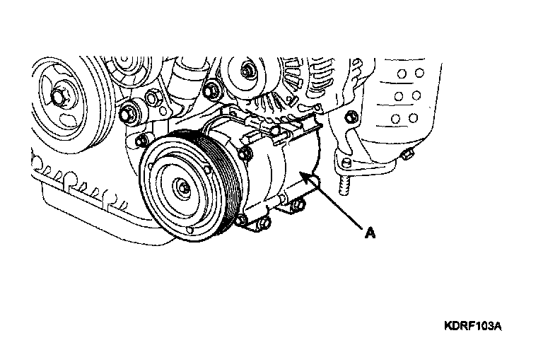 3. Remove the A/C compressor (A).