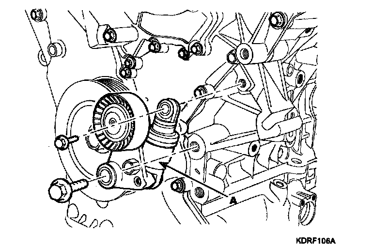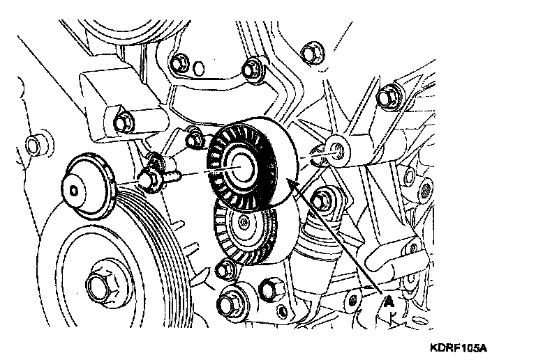 6. Remove the drive belt auto tensioner (A).