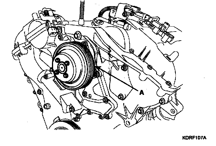 7. Remove the water pump pulley (A).