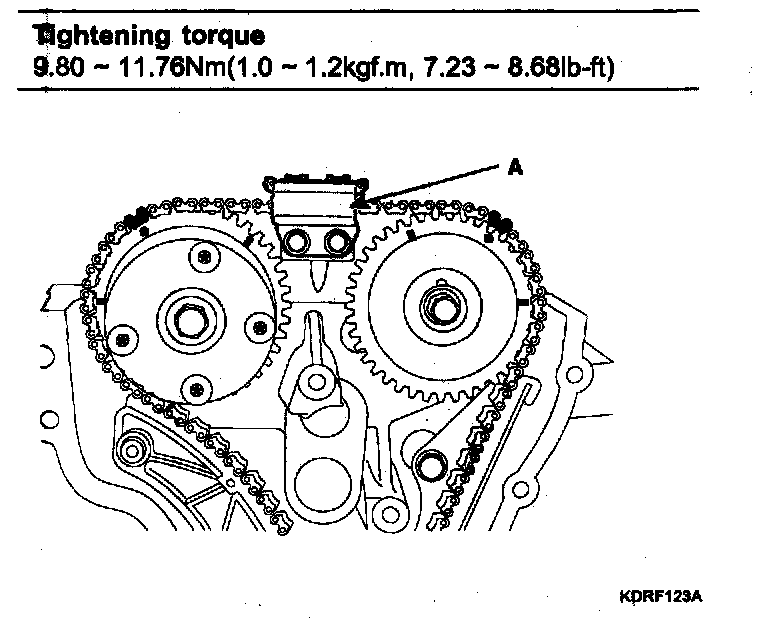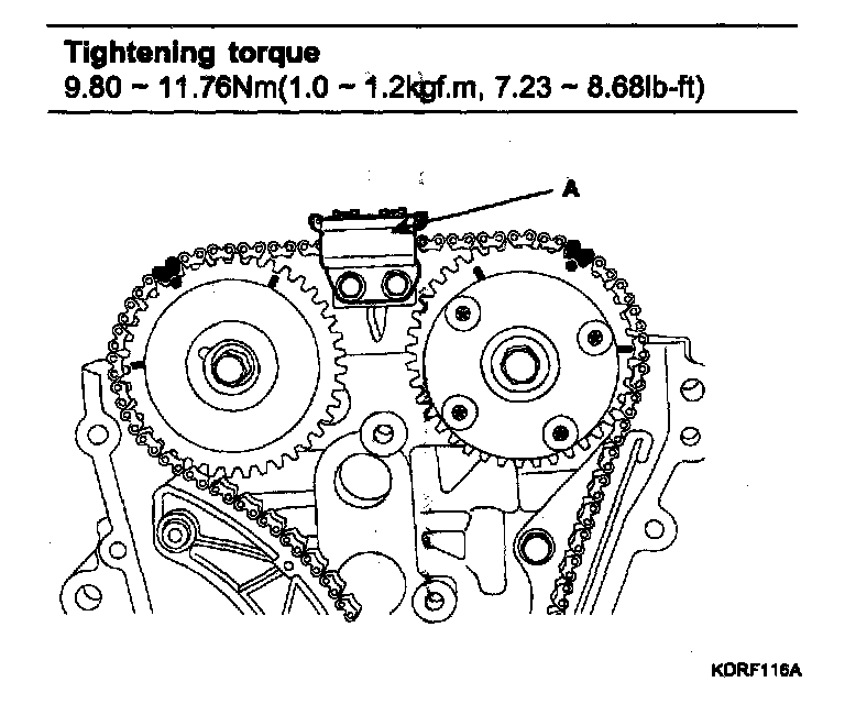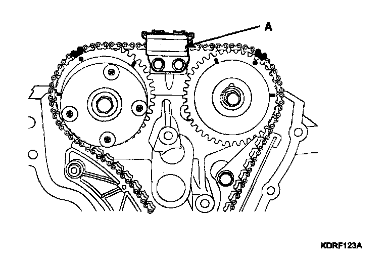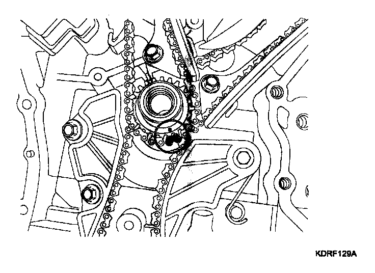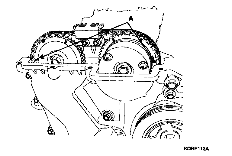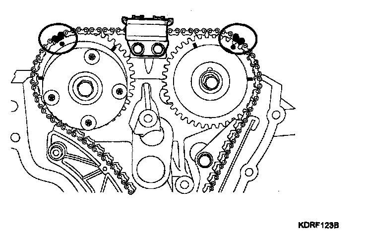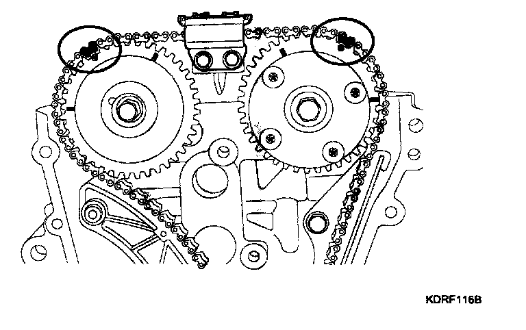 To install the timing chain with no slack between each shaft (cam, crank), follow the below procedure.
