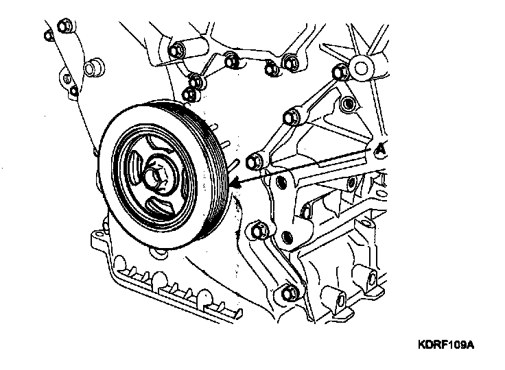 4. Remove the crankshaft damper pulley (A).