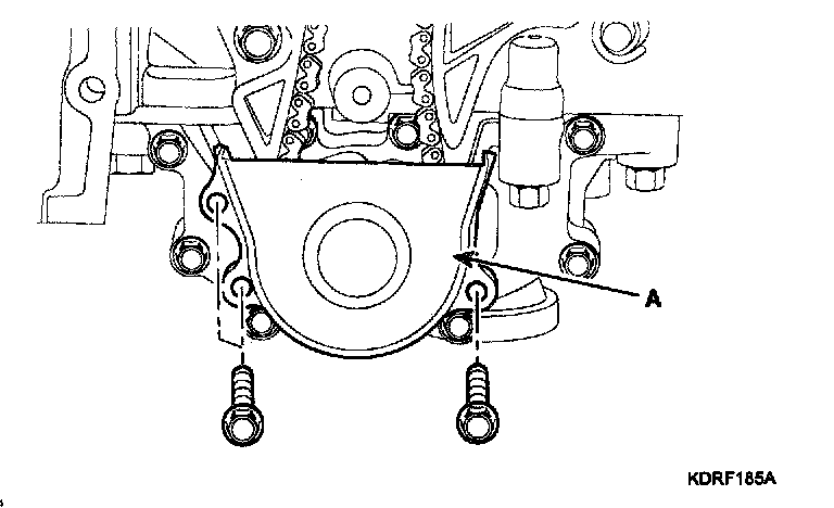 9. Remove the oil pump chain cover (A).
