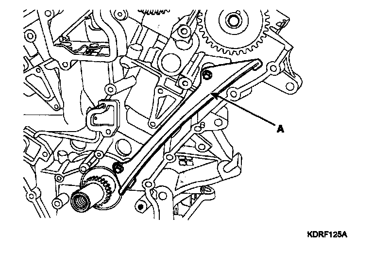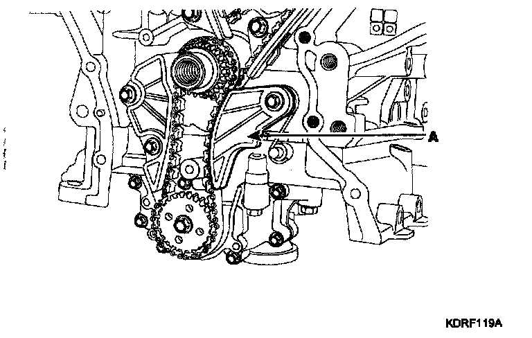 11. Remove the oil pump chain guide (A).