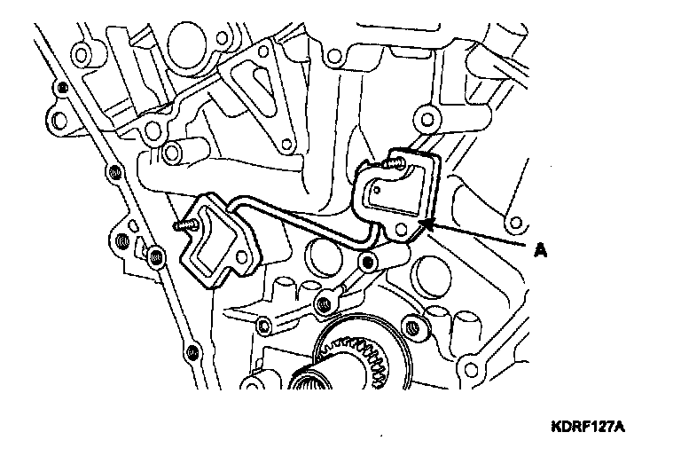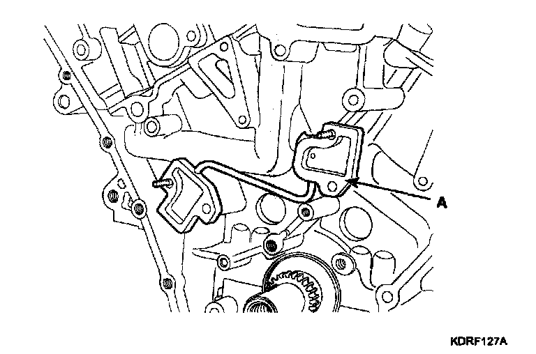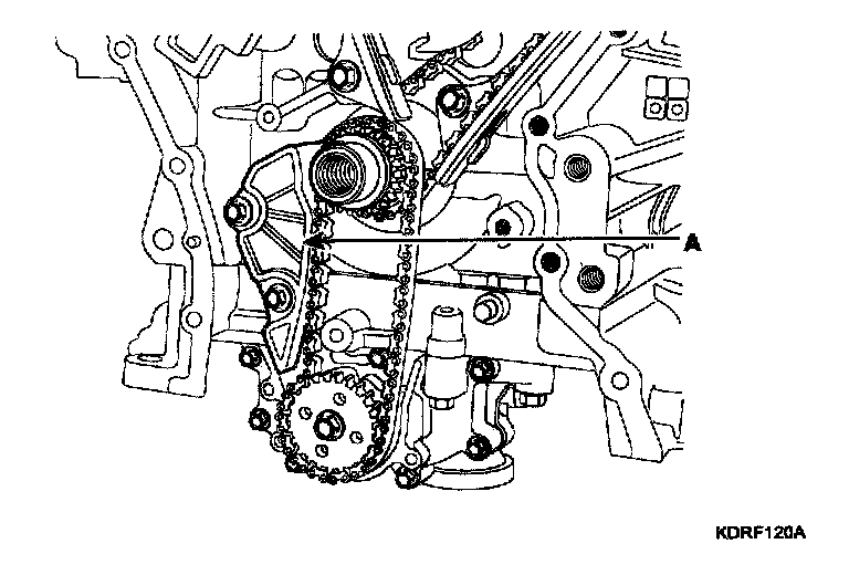 10. Remove the oil pump chain tensioner assembly (A).