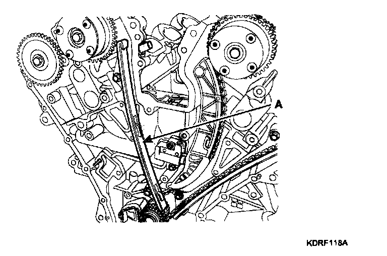 19. Remove the LH timing chain guide (A).