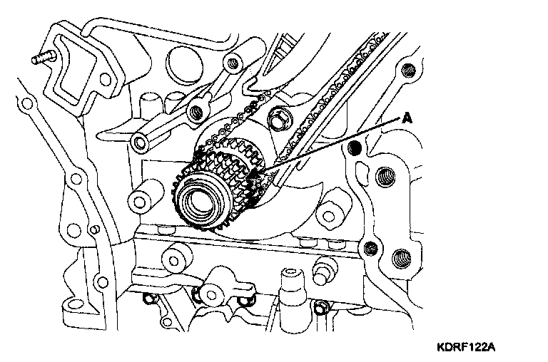 3. Install the crankshaft sprocket (A) (LH camshaft drive).