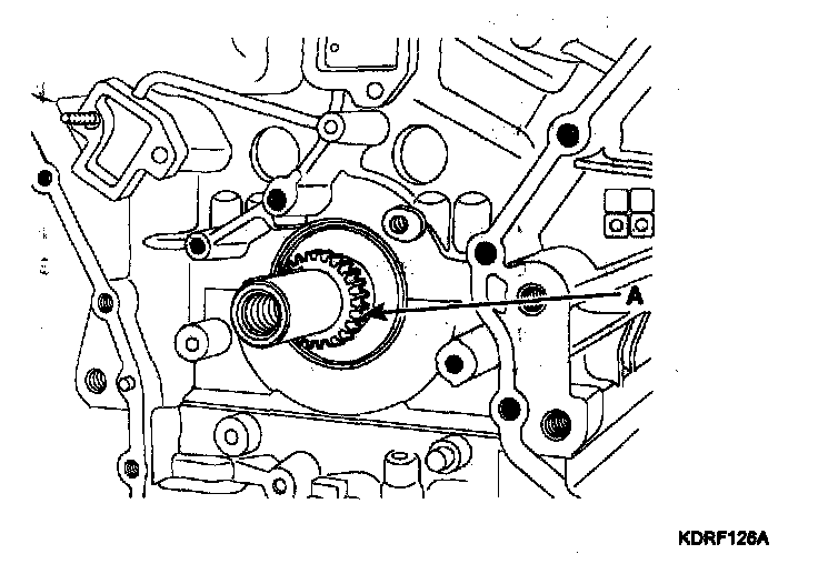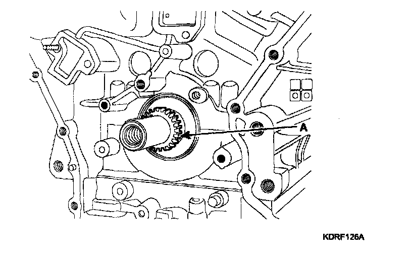 15. Remove the crankshaft sprocket (A) (Oil pump & RH camshaft drive).