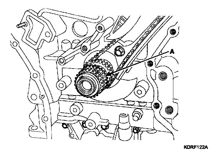 20. Remove the crankshaft sprocket (A) (LH camshaft drive).
