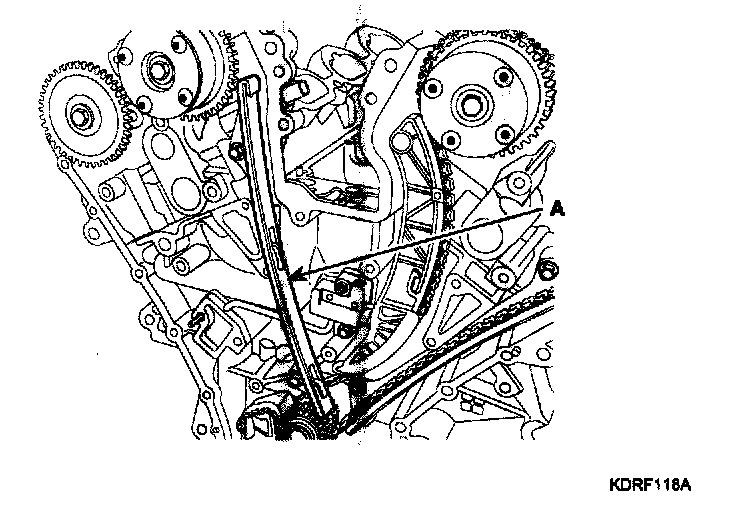 13. Remove the RH timing chain guide (A).