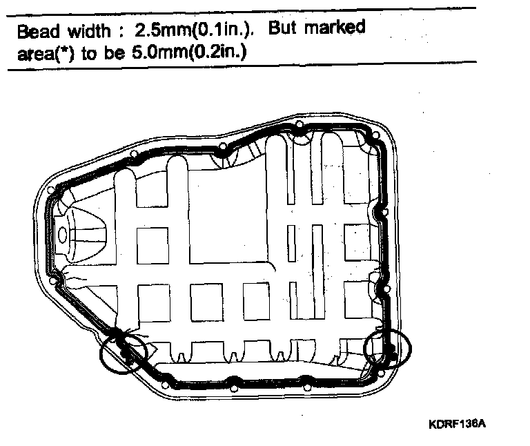 ^ When applying sealant gasket, sealant must not protrude Into the Inside of oil pan.