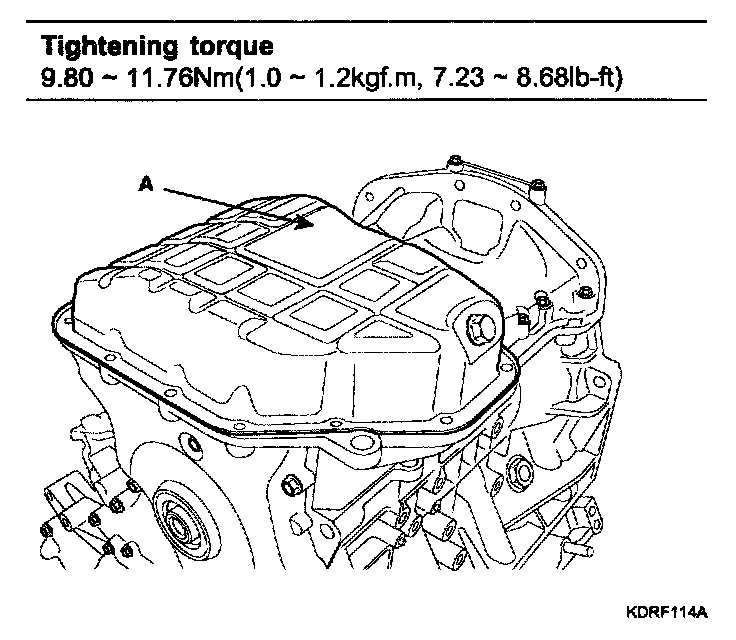 f. Install the oil pan (A).