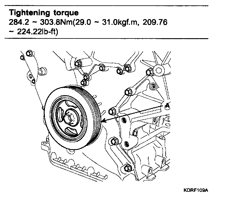 24. Using the SST (09231-3C300), install the crankshaft damper pulley (A).