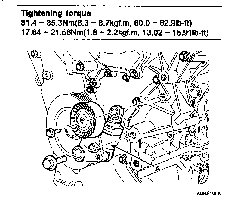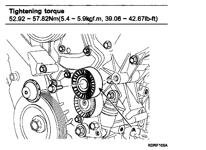 3. Install the drive belt auto tensioner (A).