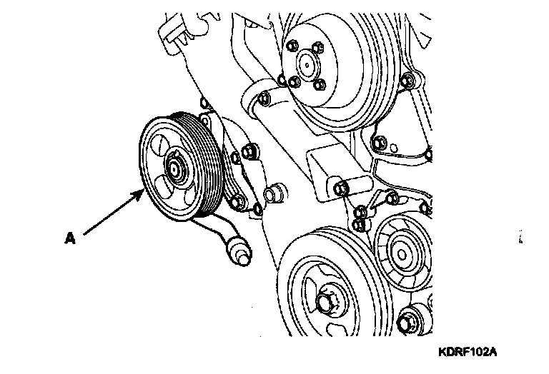 2. Remove the power steering pump (A).