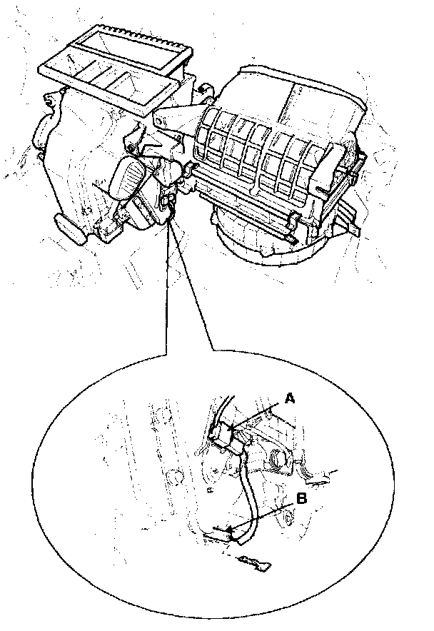 4. Disconnect the connector (A) of water temperature sensor (B) and then remove the water temperature sensor by pulling out.