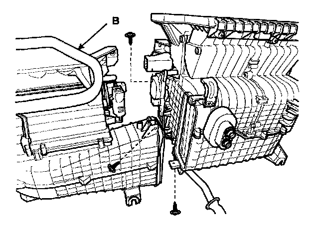 10. Remove the blower unit (B) from heater unit after loosening 3 screws.