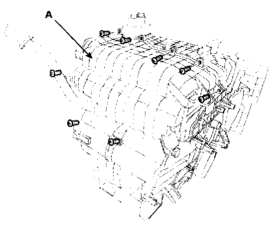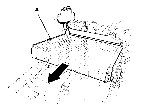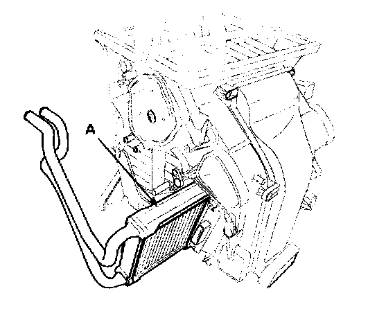 4. Remove the bolts (A) and the expansion valve (6) from the evaporator core.