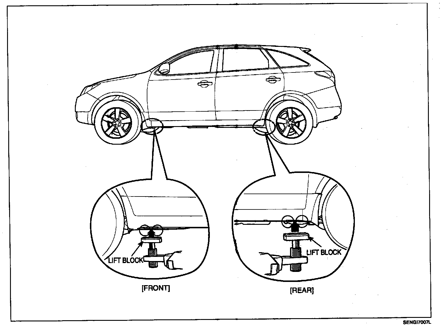 1. Place the lift blocks under the support points as shown in the illustration.