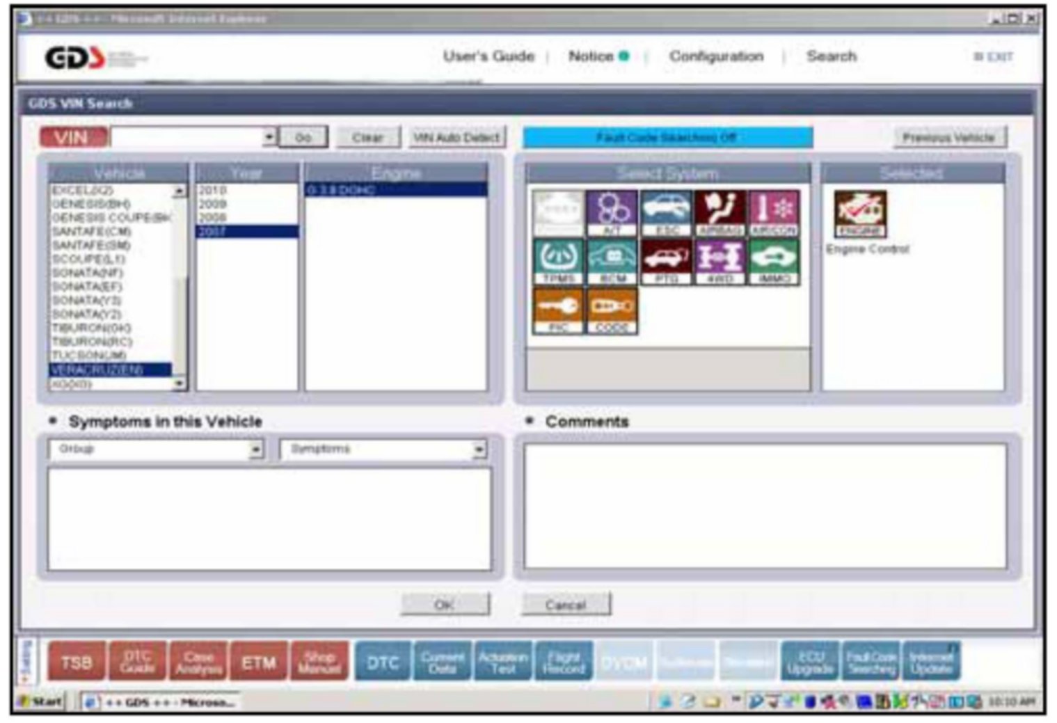 2. Enter the vehicle information and "ENGINE", then click OK.