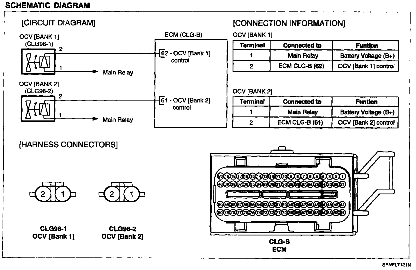 CAUTION: If the OCVs are installed incorrectly the vehicle may be damaged.So when installing them, pay attention to its connector color (Components and harness side).