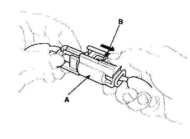 To release the lock, pull the spring-loaded sleeve (A) and the slider (B), while holding the opposite half of the connector. Pull the connector halves apart. Be sure to pull on the sleeve and not on the connector half.