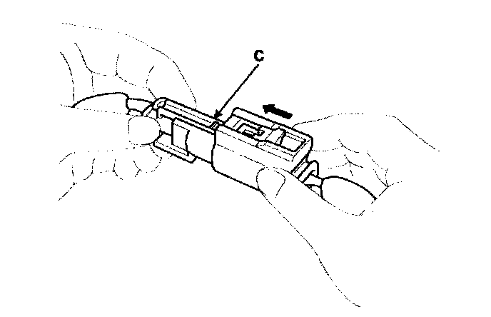 Hold both connector halves and press firmly until the projection (C) of the sleeve-side connector clicks to lock.
