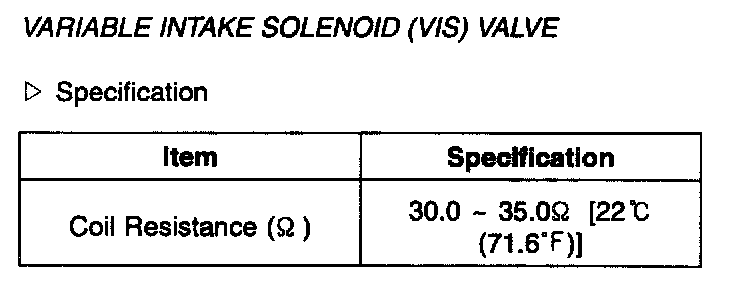 Variable Intake Solenoid (VIS) Valve - Specification: