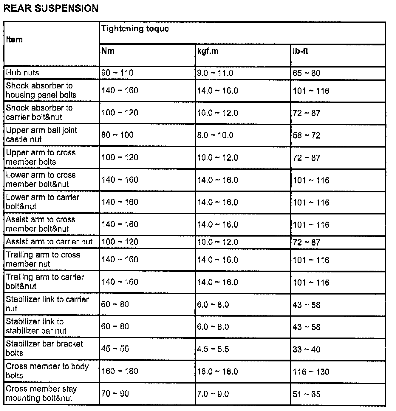 Tightening Torque