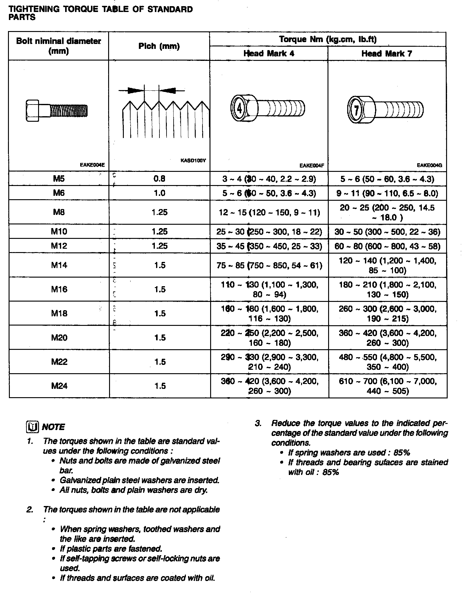Tightening Torque Table Of Standard Parts: