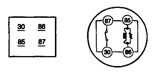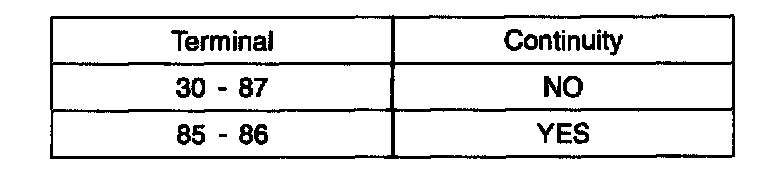4. Apply 12 V to terminal 85 and ground to terminal 86 Check for continuity between terminals 30 and 87.