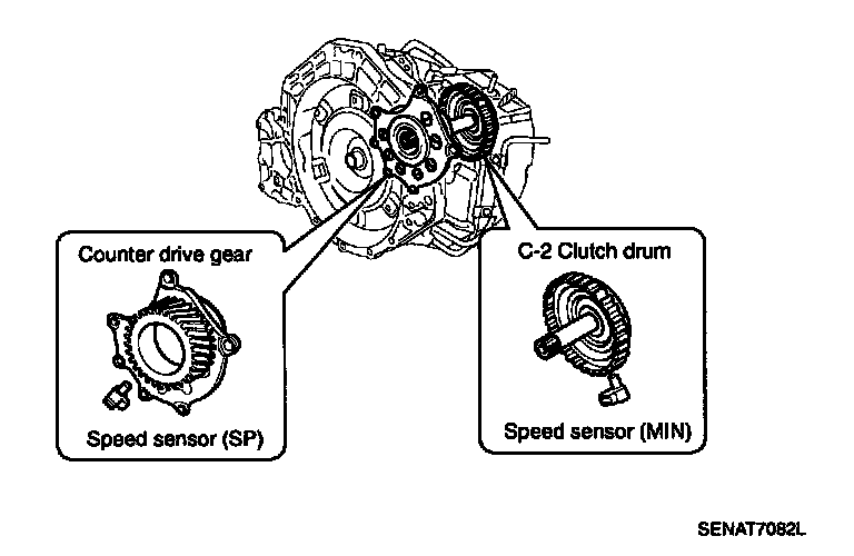 This sensor detects the number of revolutions of the intermediate shaft's C2 drum as input shaft speed.