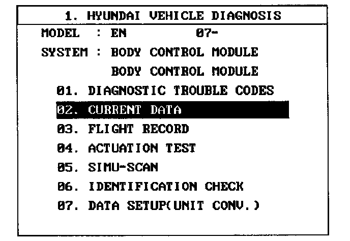 2. Select model and BCM menu.