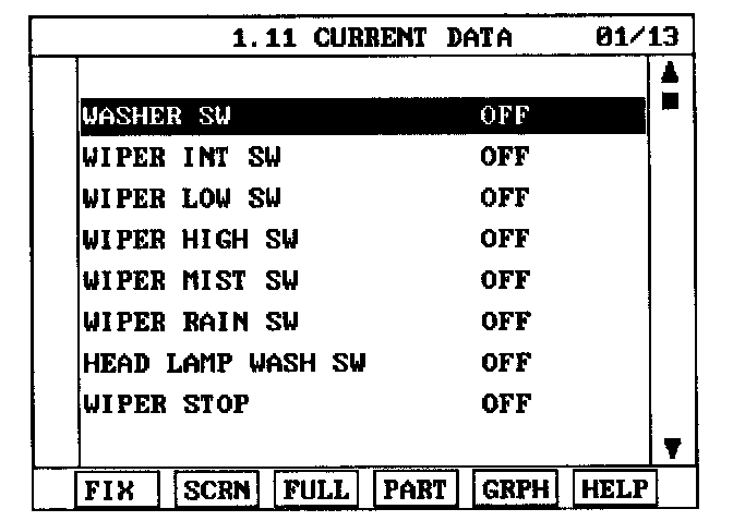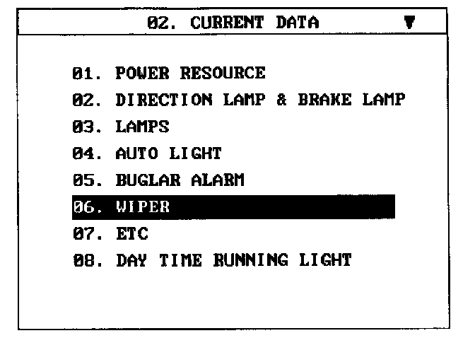3. Select "CURRENT DATA" and "WIPER".