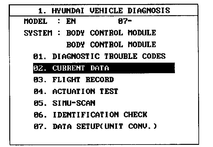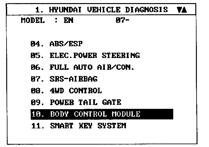 3. Select model and BCM menu.