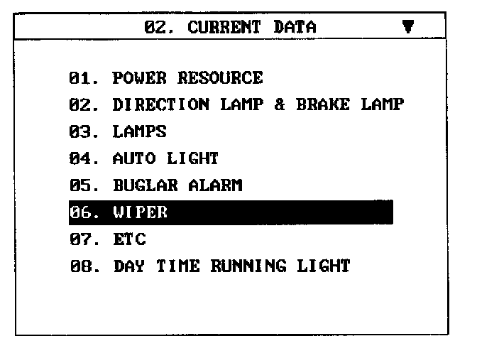 4. Select "Current data" and wiper.