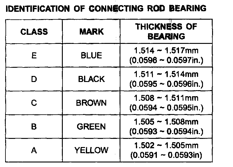 IDENTIFICATION OF CONNECTING ROD BEARING: