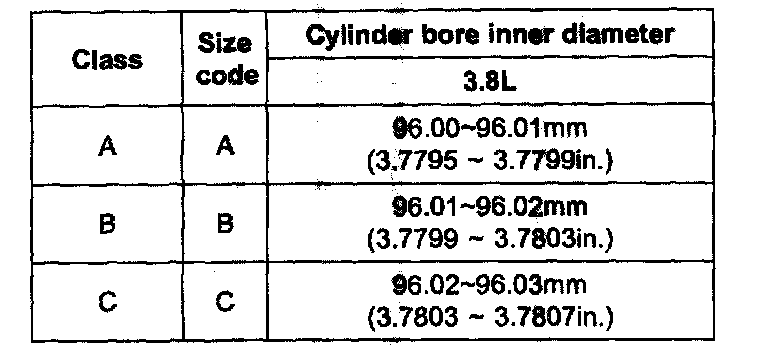 6. Check the cylinder bore size code on the cylinder block.