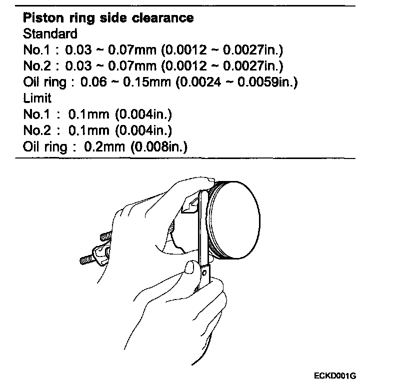 4. Inspect the piston ring side clearance.