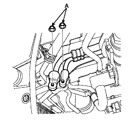 4. Remove 2 nuts (A), and then disconnect the discharge line and liquid line from the condenser.