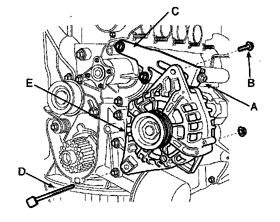 10. Remove the generator brace (C).