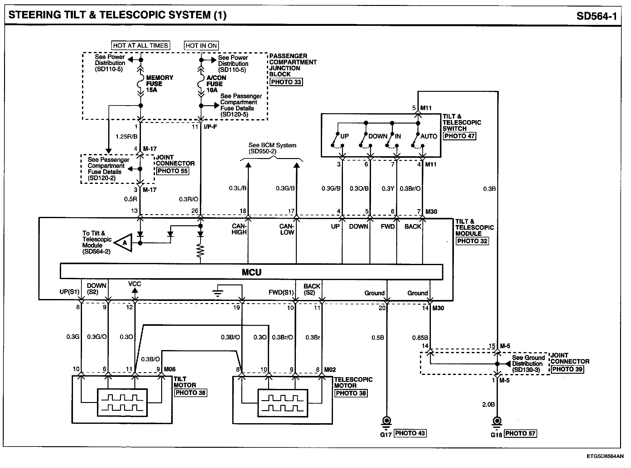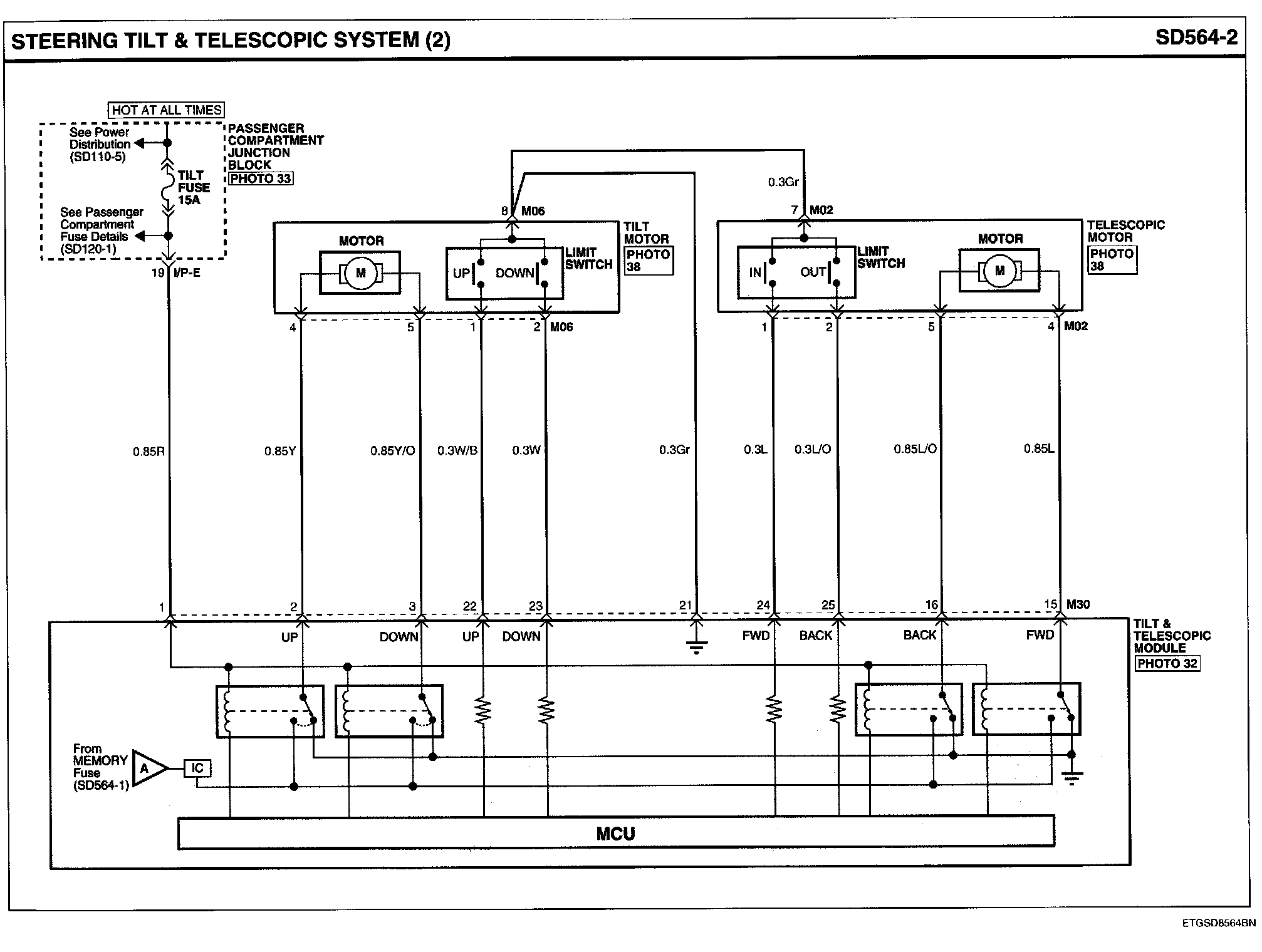 Steering Tilt & Telescopic System Connector Pin Outs: