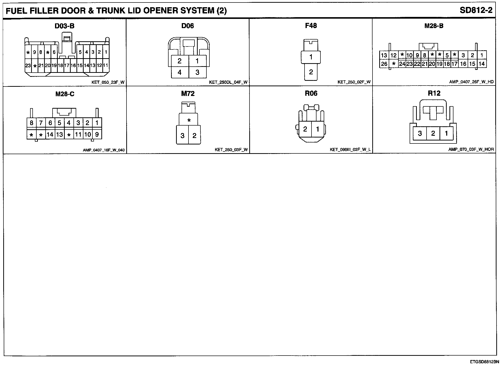 Fuel Filler Door & Trunk Lid Opener System Connector Pin Outs: