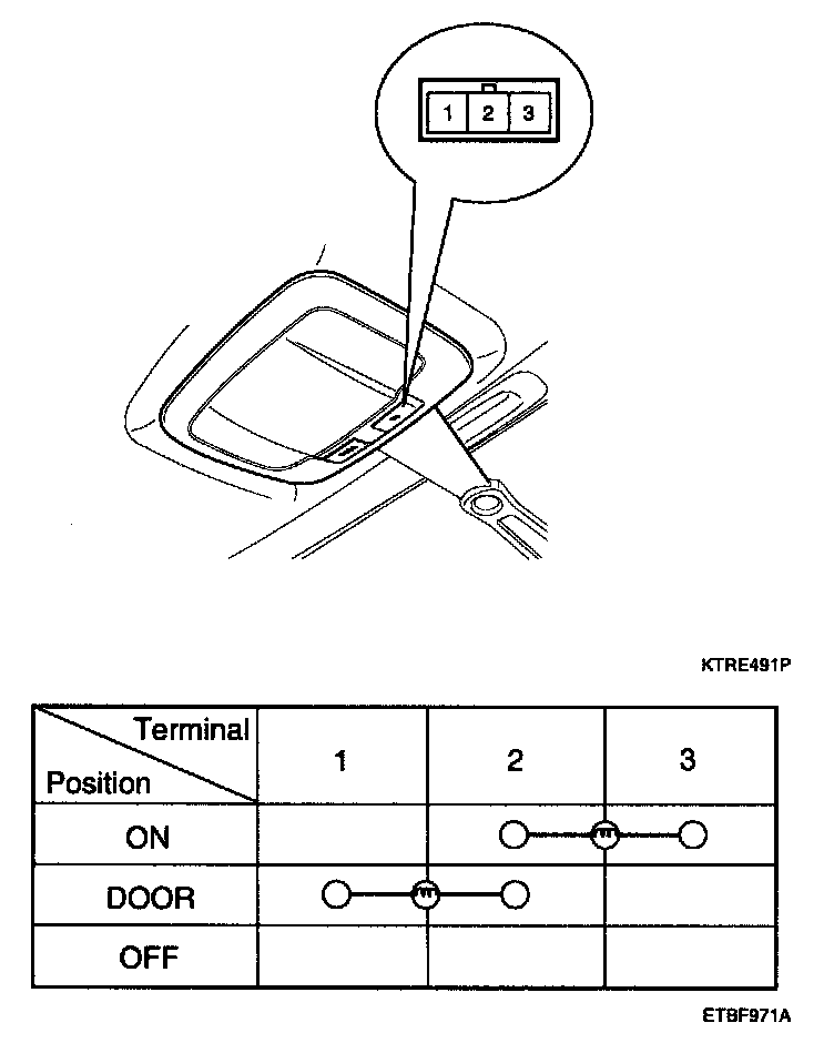 ROOM LAMPINSPECTIONRemove the room lamp assembly then check for continuity between terminals.