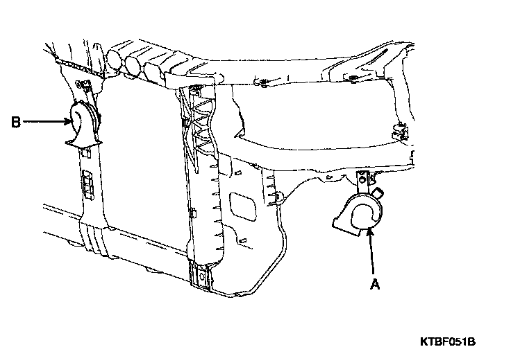 horn connector, then remove the high pitch horn (A) and low pitch horn (B).