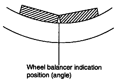 4. Install drive-in balance weight on inner side of road wheel in the wheel balancer indication position (angle).