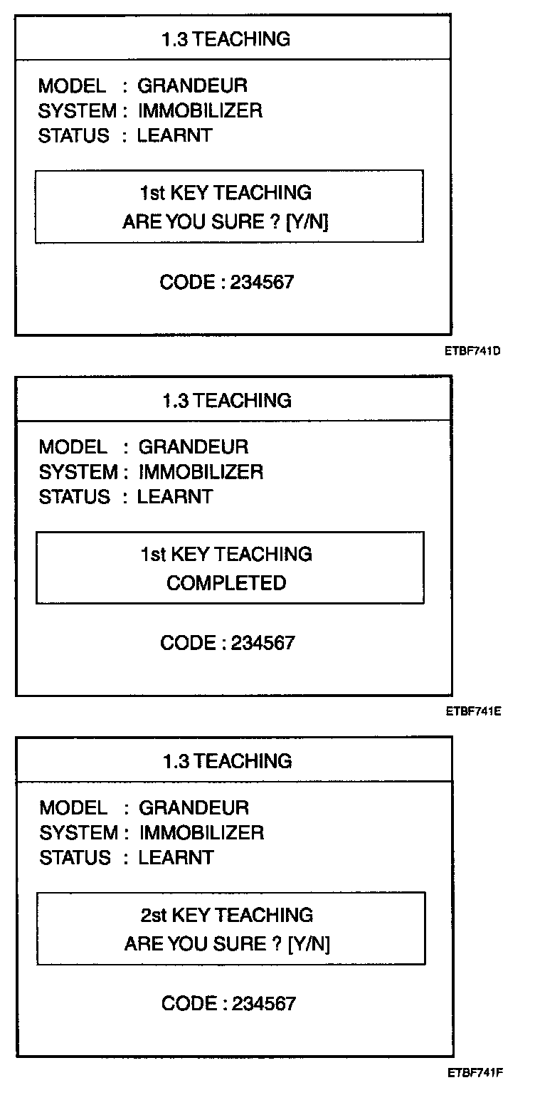 The attempt to repeatedly teach a key, which has been taught already during the same teaching cycle, is recognized by the PCM (ECM). This rejects the key and a message is sent to the tester.